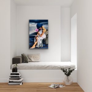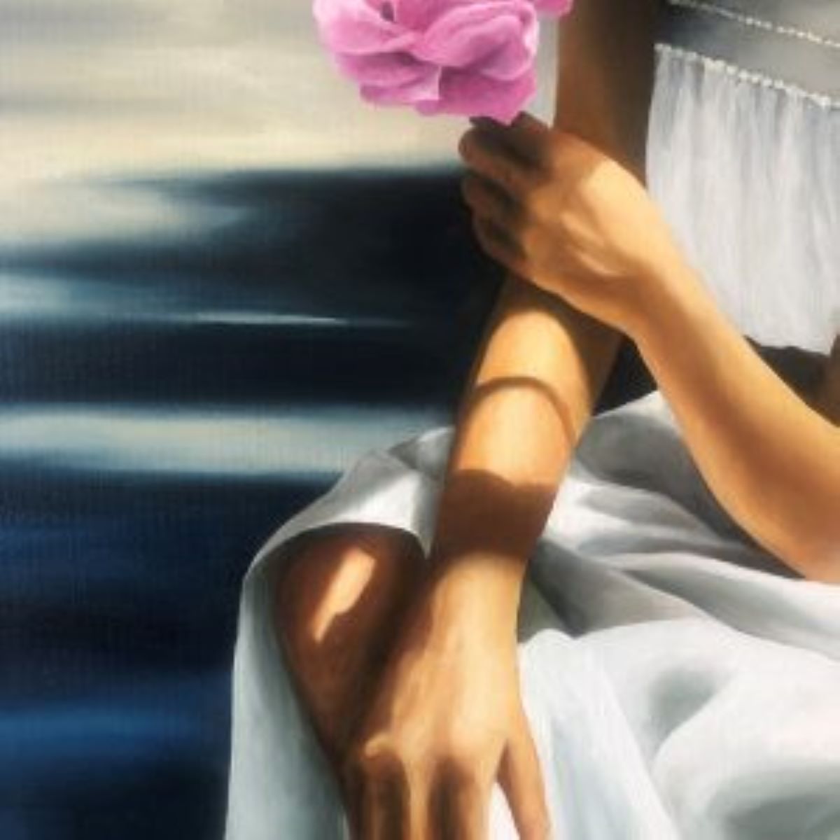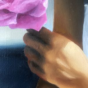 When I began this piece I had no idea of the storm that was about to engulf me but the act of continuing to paint throughout it helped me to stay strong. The fact that my daughter is the model and the rose was propagated from my mother’s garden served to reinforce the love I felt surrounding me and I’ll always be grateful for that.
