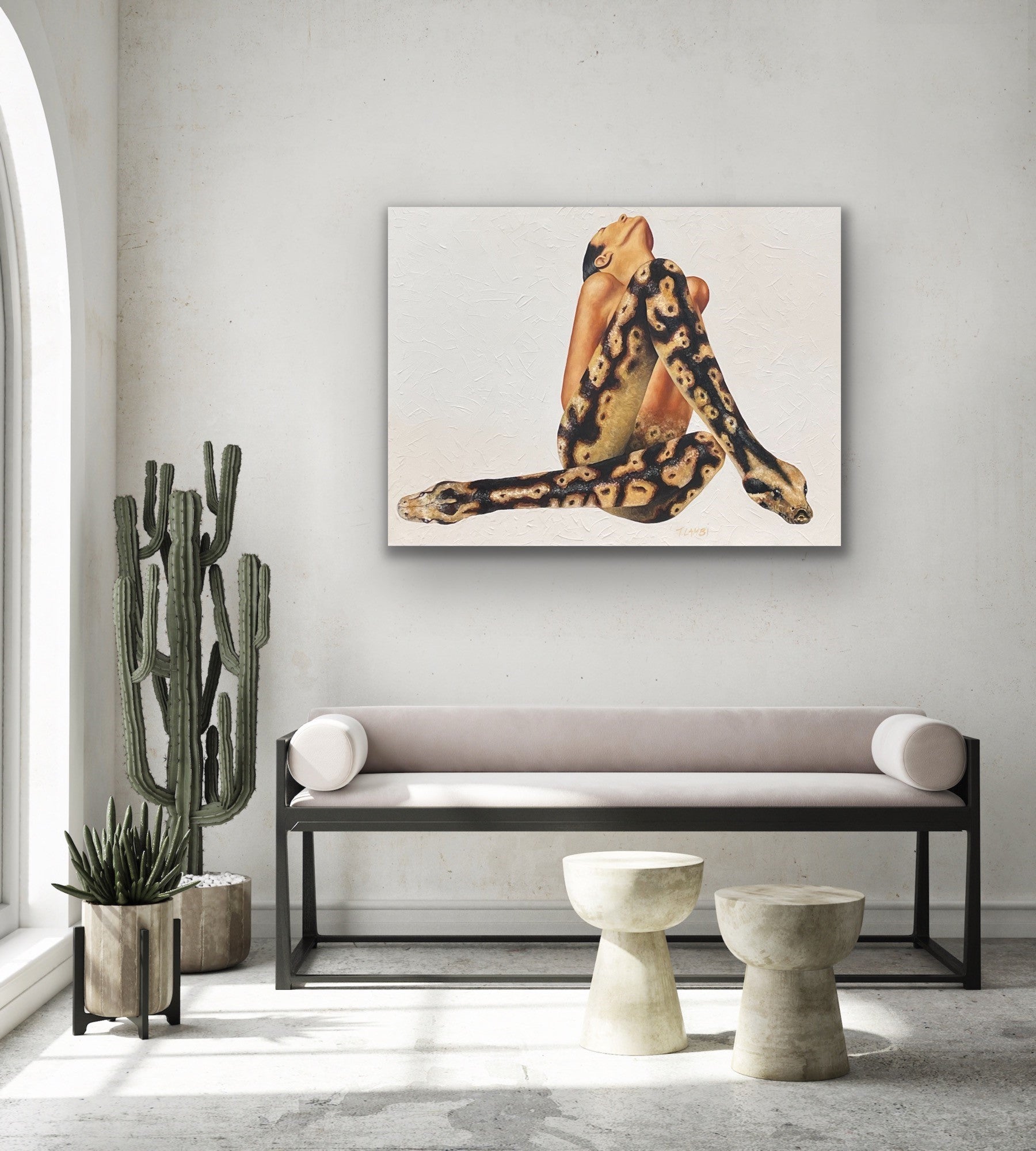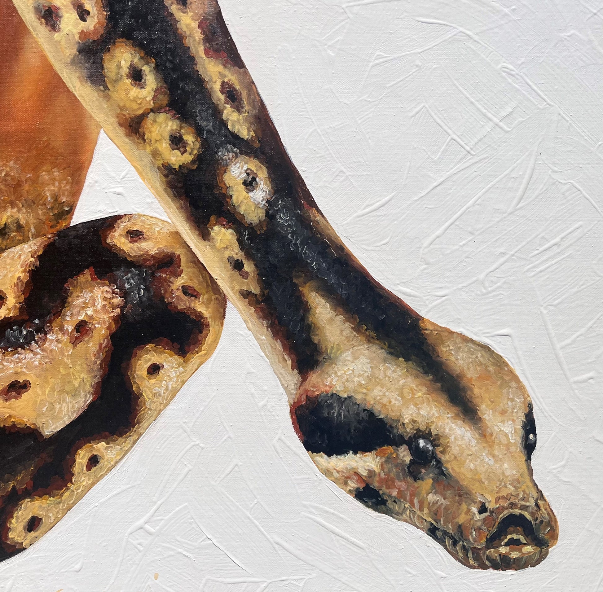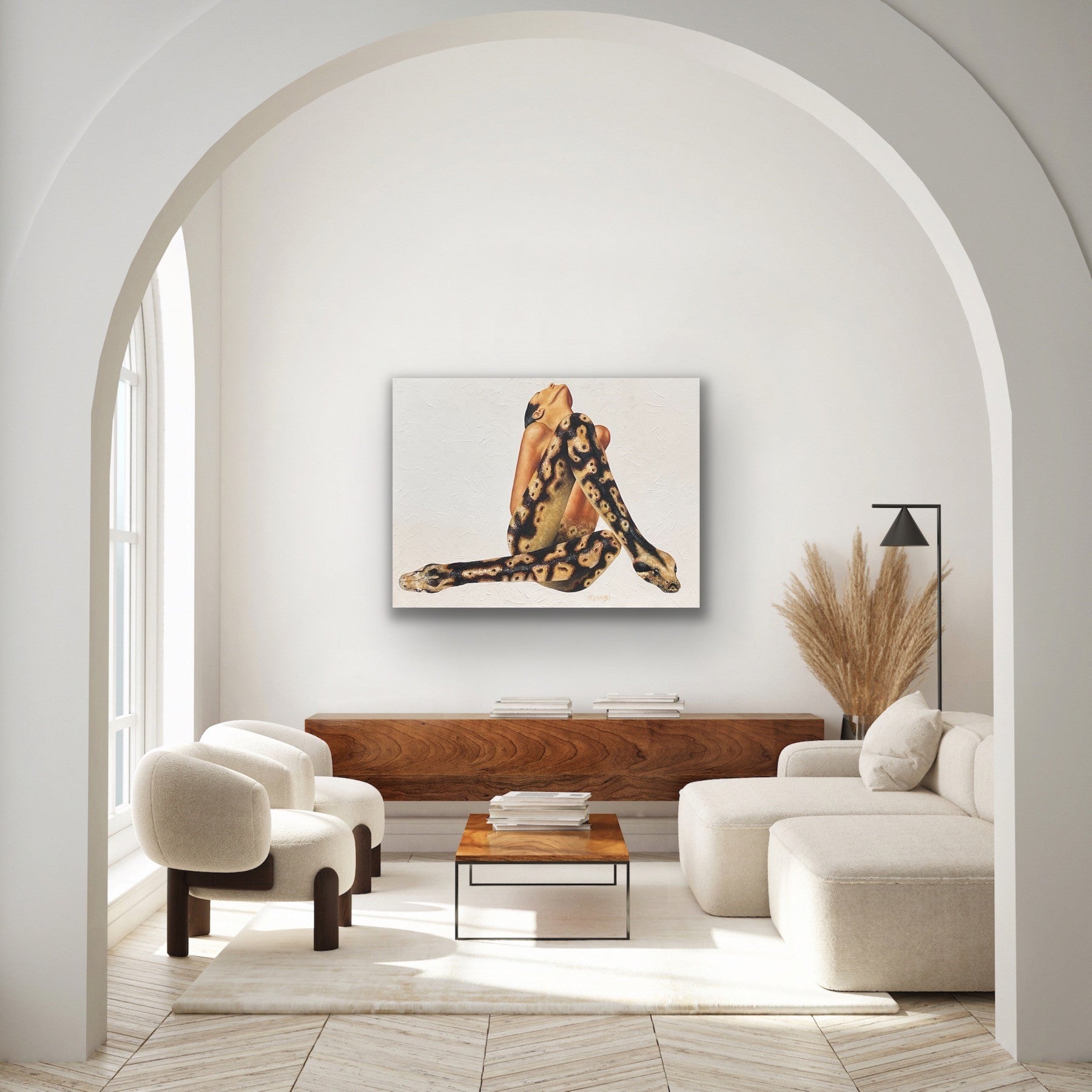 In "Guardian of the Soul," I delve into the mystique of Egyptian mythology, drawing inspiration from the enigmatic guardian of the underworld, Nehebkau. Initially perceived as an ominous spirit, Nehebkau's metamorphosis into a powerful, benevolent deity serves as the thematic backbone of this painting. It is a visual narrative that transcends the dichotomy of good and evil, fear and protection, echoing the complexities inherent in the ancient tales that have shaped our understanding of the afterlife.