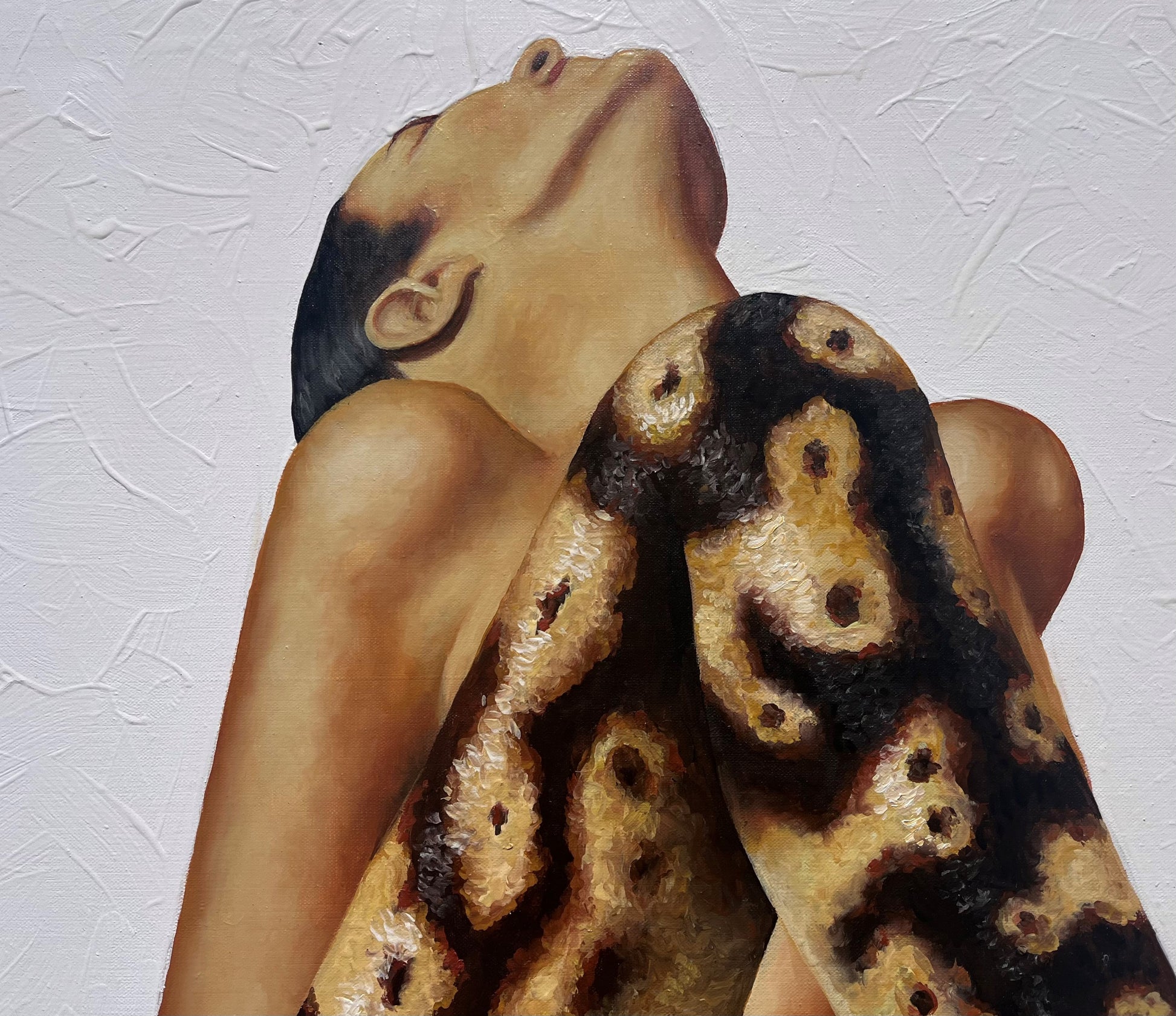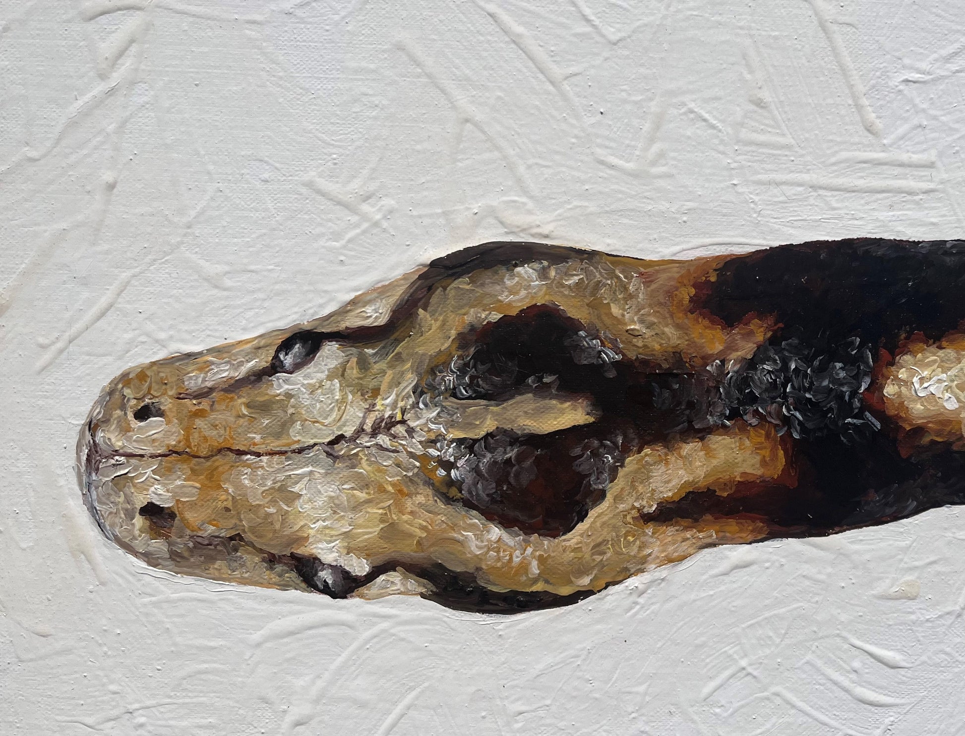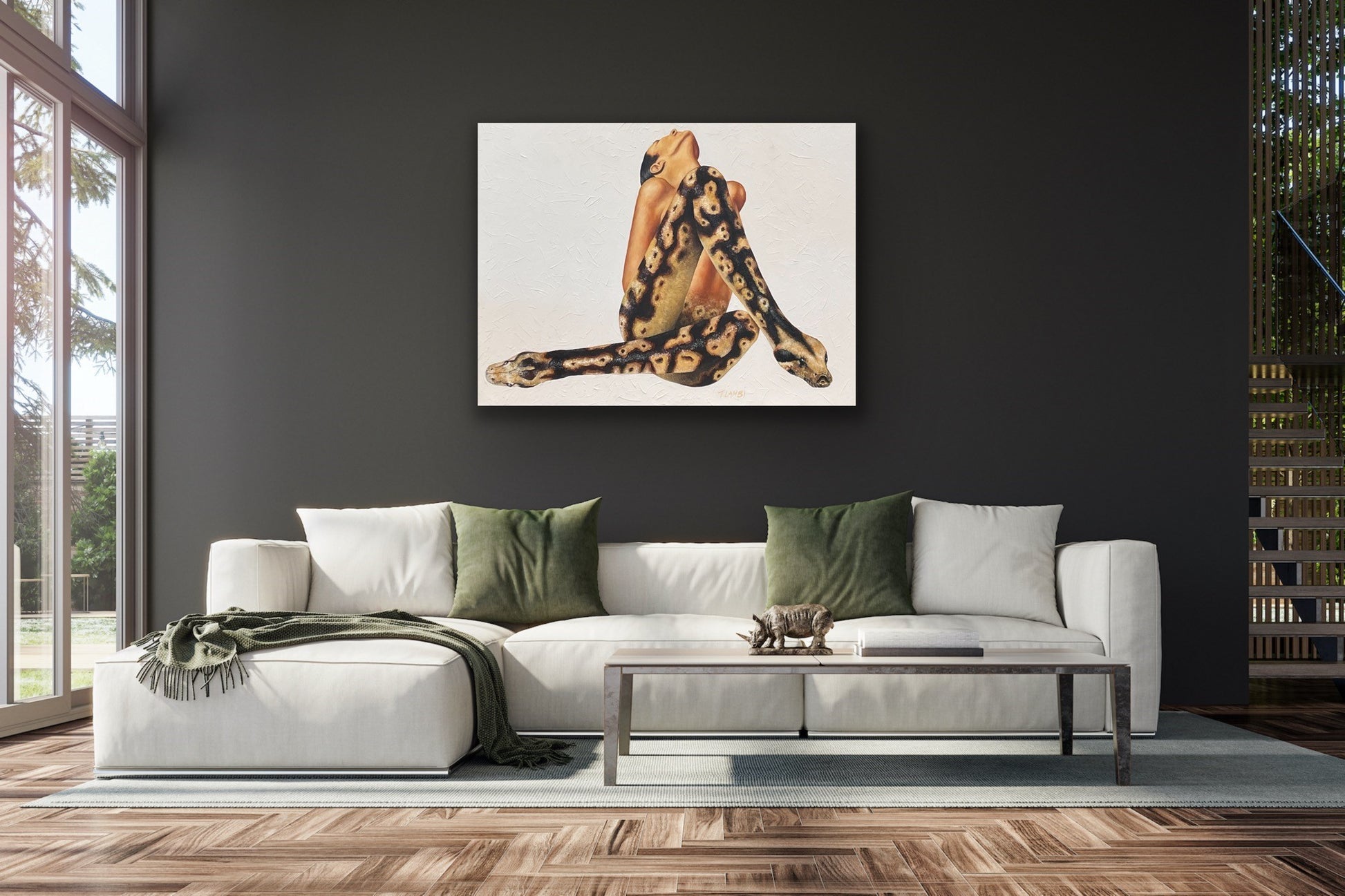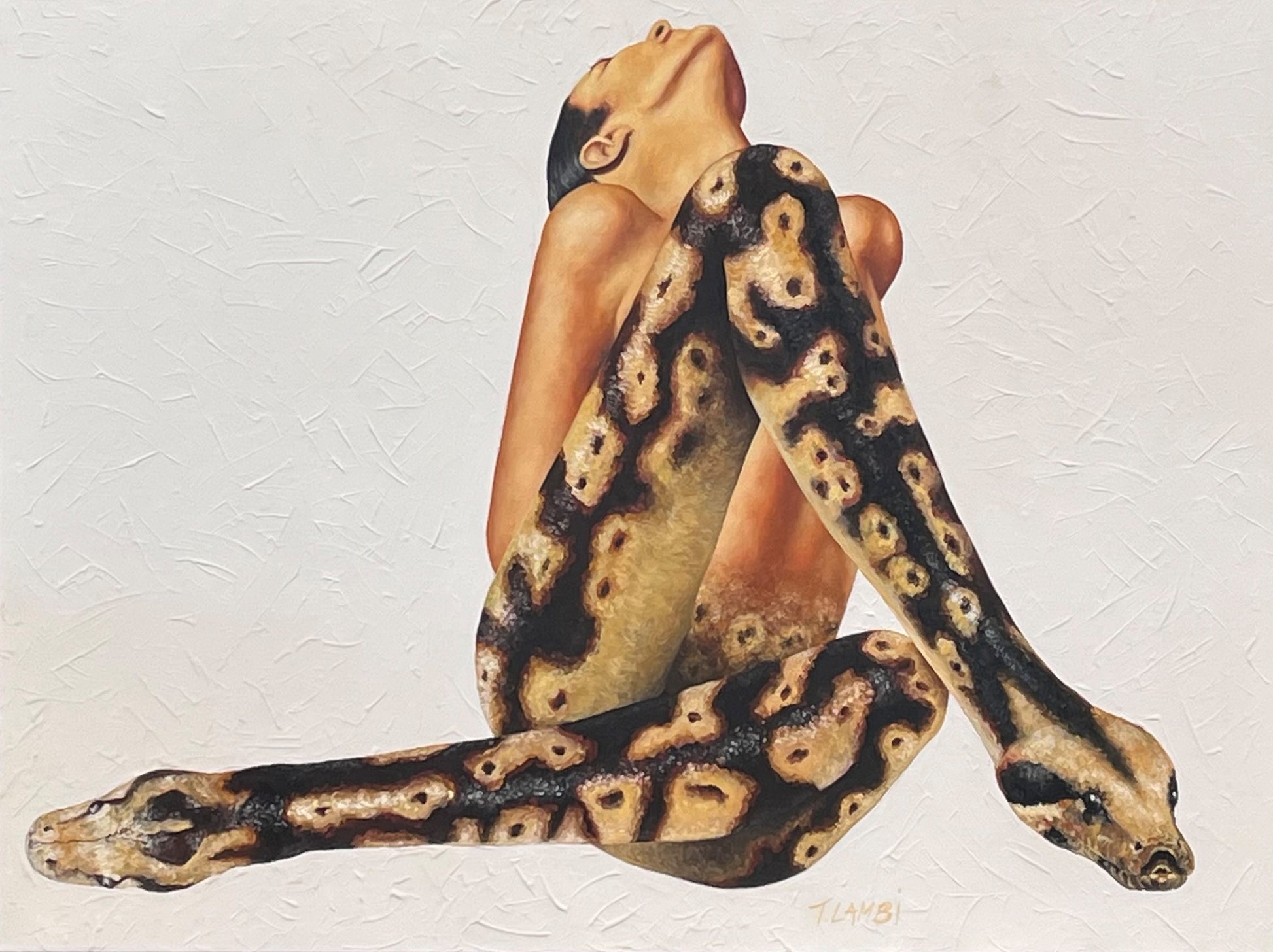 In "Guardian of the Soul," I delve into the mystique of Egyptian mythology, drawing inspiration from the enigmatic guardian of the underworld, Nehebkau. Initially perceived as an ominous spirit, Nehebkau's metamorphosis into a powerful, benevolent deity serves as the thematic backbone of this painting. It is a visual narrative that transcends the dichotomy of good and evil, fear and protection, echoing the complexities inherent in the ancient tales that have shaped our understanding of the afterlife.