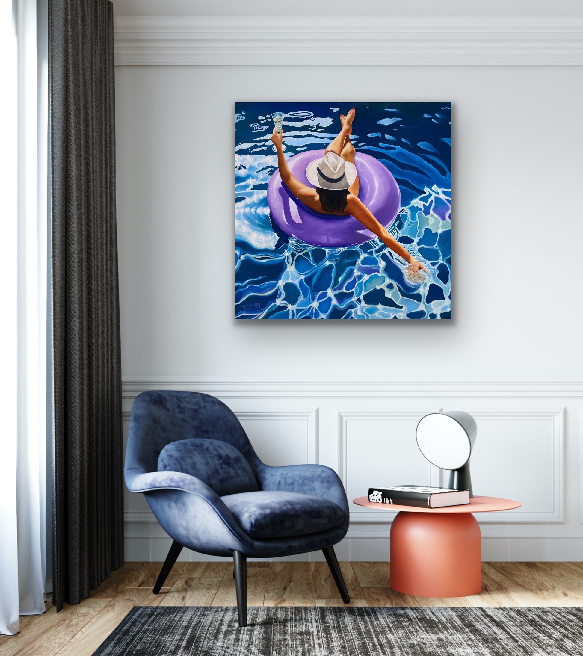 During the Covid lockdown I started a series of pool paintings based on a photo shoot conducted with my daughter during that challenging time. I loved the interplay of light and reflection in the sparkling water, and each painting was characterized by a cheerful pop of colour – a cheerfulness sorely needed during those strange times. The series quickly gained momentum and sold out, marking what I believed to be the end of that line of inspiration.