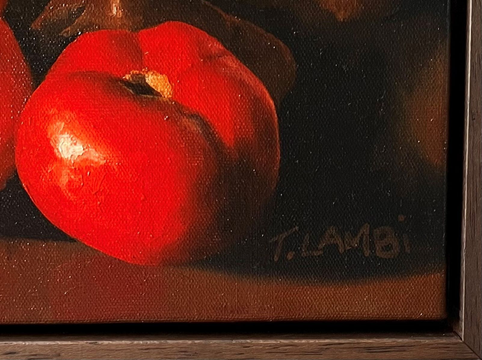 Framed in a dark timber box frame