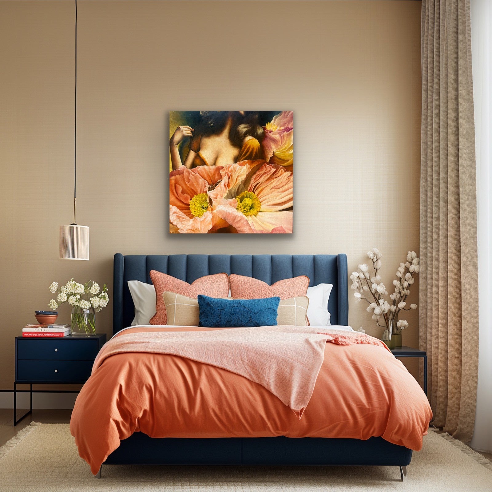 The poppies in this piece feel alive and present, not just as decoration but as part of the figure’s story. They both reveal and conceal, creating a balance between intimacy and mystery. Through this work, I seek to evoke a sense of reverence for the sensual and the ephemeral. It is a meditation on softness as strength, on beauty that is both bold and quiet, fleeting and timeless.